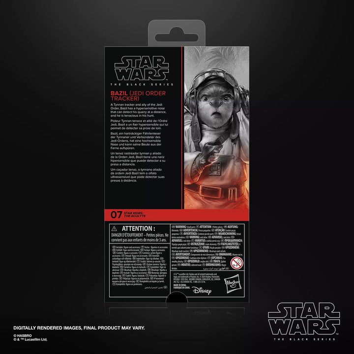 Star Wars The Black Series includes 6 inch action figures, vehicles, and roleplay items from the 40-plus-year legacy of the Star Wars galaxy, letting fans create galactic scenes with a faithfulness to Star Wars comic books, movies, and series. This Star Wars action figure is detailed to look like Bazil (Jedi Order Tracker) from Star Wars: The Acolyte. With exquisite features and decoration, The Black Series embodies the quality and realism that Star Wars devotees love. May the Force be with you! (Additional products each sold separately. Subject to availability.)