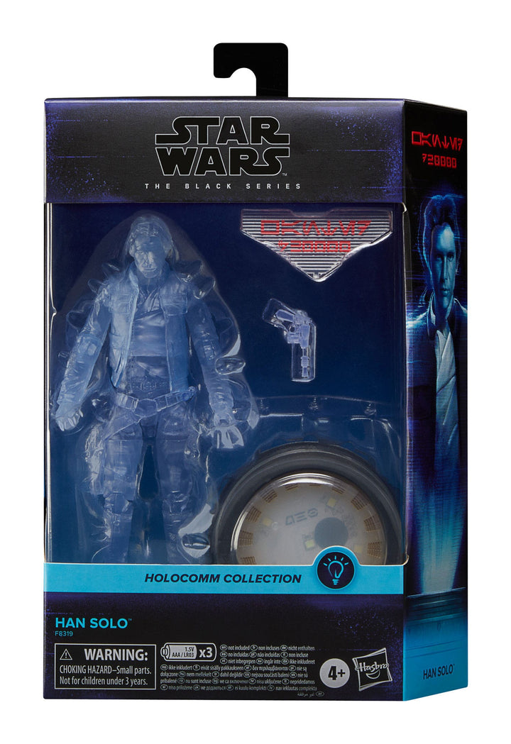 Star Wars The Black Series includes 6 inch action figures, vehicles, and roleplay items from the 40-plus-year legacy of the Star Wars Galaxy. This Star Wars action figure is detailed to look like a hologram version of Han Solo, featuring premium detail and multiple points of articulation. Plus, each figure in The Black Series Holocomm Collection comes with a light-up holopuck for display! (Additional products each sold separately. Subject to availability.)