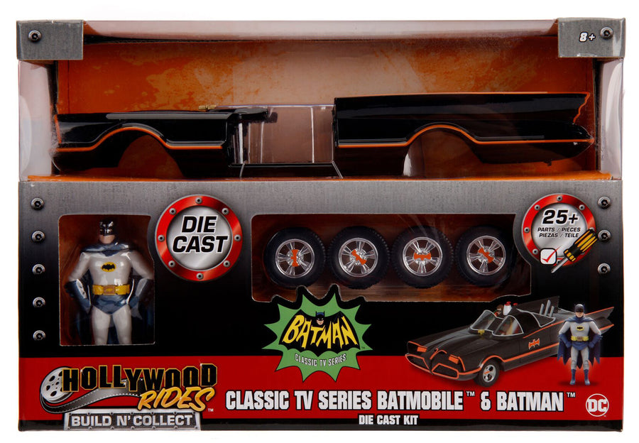 Assemble your own version of the iconic Batmobile from Batman the Classic TV Series. With over 25 pieces, this 1:24 scale Batmobile features a die-cast body with rubber tires and includes a 2.75” die cast Batman figure and seated plastic Robin figure. Inside the box is everything you need to assemble Batman’s iconic ride. Whether on the streets or off-road, the Batmobile is formidable in all kinds of terrain! Collect them all today.