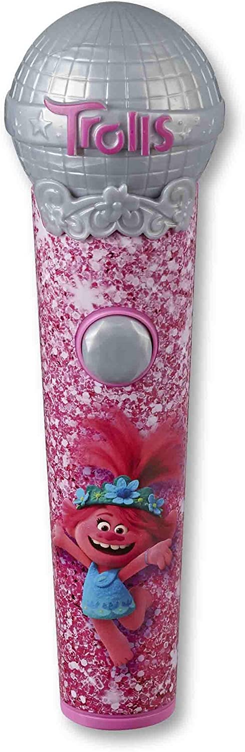 In the movie Trolls World Tour, DreamWorks Queen Poppy and her friends go on an epic, Trolls-tastic journey to save all music. Now kids can have the fun of singing along with Poppy and her friends with Poppy's Microphone. This musical toy features 5 different songs from the movie, each from one of the Troll's sequel's musical lands, including Trolls Just Want to Have Fun, Good Times, and Rock You Like a Hurricane. The microphone lights up when the music plays, pulsing to the beat as kids sing these fun songs.