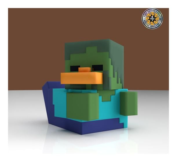 • • A ‘First Edition’ TUBBZ. Comes in a collector’s bathtub, featuring Minecraft logo, ‘First Edition’ printed on base of duck and sticker on packaging