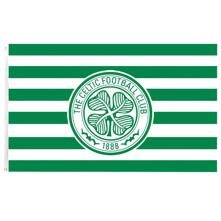 This green and white hoop flag features a full colour Celtic crest