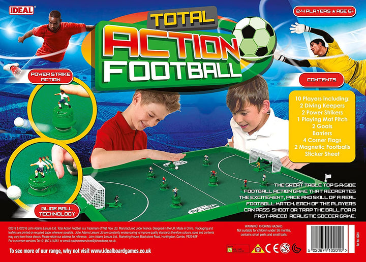 The fast paced realistic 5 a side table-top football game with magnetic action so each player can pass, shoot or trap the ball. Features power-strike action, glide-ball easy player slide technology and diving goalie!