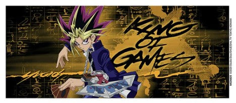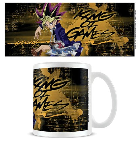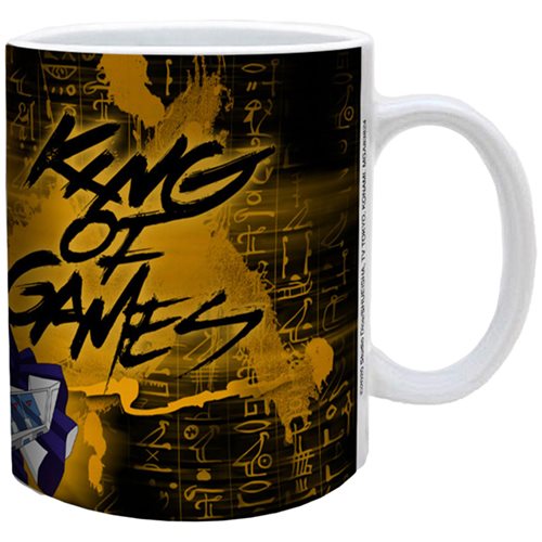 Enjoy a hot or cold beverage with this Yu-Gi-Oh King of Games 11 oz. Mug! Yugi is pictured on a black background with orange Egyptian hieroglyphs and text that reads, "King of Games." This high quality mug is made of ceramic, is dishwasher and microwave safe, and comes packaged in an open-faced gift box. Measures approximately 4 1/2-inches tall. AGES 15 AND UP.