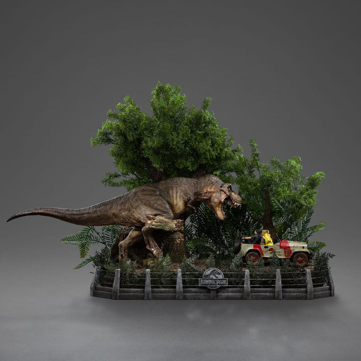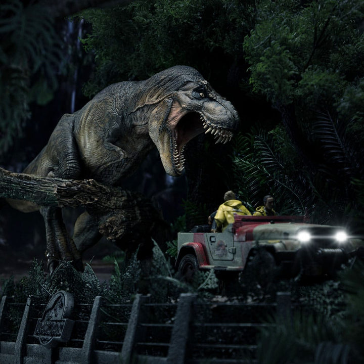 One of everyone's favorite scenes from Jurassic Park comes to life in the form of this new statue by Iron Studios! As Dr. Sattler and Robert Muldoon rescue an injured Dr. Malcolm, the trio are forced to flee in a Jeep as a terrifying T-Rex starts to give chase to them through the jungle terrain. The statue features detailed sculpt and paint applications that fans will appreciate. Don't miss out and grow your Jurassic Park collection today!